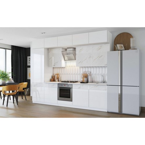 Кухня Оливия NEW 3,0х1,8м (белый глянец холодный, мрамор золото, белый)