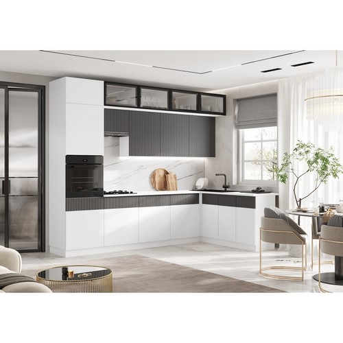 Особенности: Кухня Оливия NEW 3,0х1,8м (белый снег софт, графит софт NEW, белый) - сочетает в себе комфорт и функциональность. Стильный дизайн и высокое качество материалов. Способ открывания - push-to-open. Столешница в комплекте. Столешница цельная 180 см - 1шт., толщина - 2,6 см. Универсальная сборка. Механизм подъема - газлифты. Направляющие ящиков - шариковые полного выдвижения. Регулируемые ножки. Фурнитура без доводчиков на толкателях. Толкатели в комплекте. Высота нижних модулей указана без учета толщины столешницы. Глубина верхних и нижних модулей указана без учета фасада. Цоколь в комплект не входит. Подсветка в комплект не входит. Нагрузка на полку - до 4 кг. Нагрузка на ящик - до 3 кг.