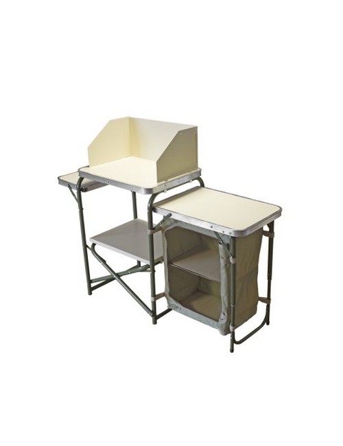 Технические характеристики: Кухня-стол Митек. Компактный и функциональный кухонный столик для обустройства полевой кухни в кемпинге, на даче или пикнике. Модель с полками обеспечивает удобное хранение посуды, продуктов и кухонных принадлежностей, помогая организовать пространство для приготовления пищи на природе. Прочный стальной каркас, обеспечивающий устойчивость. Кухня-стол Митек поможет организовать удобное пространство для приготовления пищи в любых условиях.