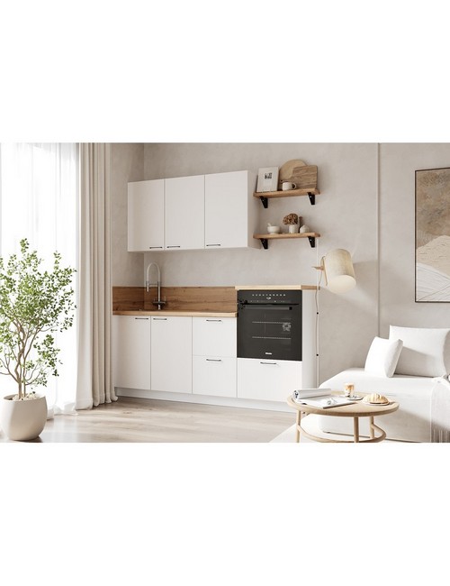 Технические характеристики: Кухонный гарнитур 1950 вариант 4 Лизет (белый софт матовый). Роскошный кухонный гарнитур с безупречными линиями и гармоничными пропорциями. Благородная палитра оттенков, выразительная текстура дерева и сдержанная эстетика, создающая атмосферу уюта и порядка. Направляющие Firmax с повышенным запасом прочности - свыше 60 000 циклов. Усиленные механизмы, выдерживающие нагрузку более 30 кг. Бесшумная и плавная работа всех движущихся элементов. Встроенная система Push to Open для скрытых ящиков, усиленное дно внутренних модулей для повышенной надежности. Высокий модуль под духовой шкаф для современного зонирования и регулируемые опоры для идеальной устойчивости. Цельная столешница без видимых стыков для простоты ухода, сменные металлические ручки, не требующие пересверливания. В кухонном гарнитуре 1950 вариант 4 коллекции Лизет каждая деталь, от премиальной фурнитуры до бесшовных поверхностей, создает кухню, которая станет не только функциональным пространством, но и источником вдохновения для всей семьи.
