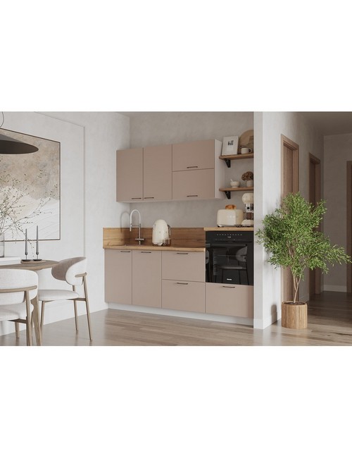 Технические характеристики: Кухонный гарнитур 2100 Лизет (крем). Роскошный кухонный гарнитур с безупречными линиями и гармоничными пропорциями. Благородная палитра оттенков, выразительная текстура дерева и сдержанная эстетика, создающая атмосферу уюта и порядка. Направляющие Firmax с повышенным запасом прочности - свыше 60 000 циклов. Усиленные механизмы, выдерживающие нагрузку более 30 кг. Бесшумная и плавная работа всех движущихся элементов. Встроенная система Push to Open для скрытых ящиков, усиленное дно внутренних модулей для повышенной надежности. Высокий модуль под духовой шкаф для современного зонирования и регулируемые опоры для идеальной устойчивости. Цельная столешница без видимых стыков для простоты ухода, сменные металлические ручки, не требующие пересверливания. В кухонном гарнитуре 2100 коллекции Лизет каждая деталь, от премиальной фурнитуры до бесшовных поверхностей, создает кухню, которая станет не только функциональным пространством, но и источником вдохновения для всей семьи.