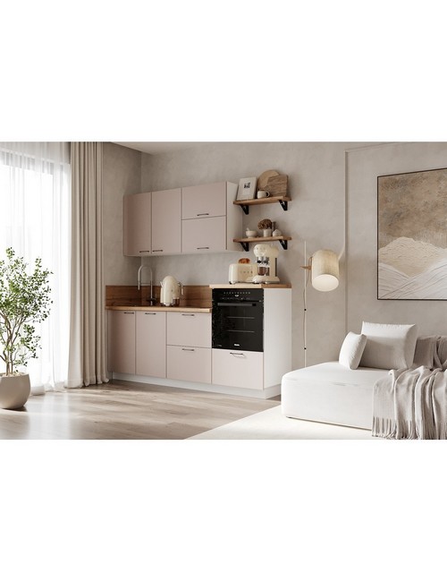 Технические характеристики: Кухонный гарнитур 2100 Магнолия ПВХ. Роскошный кухонный гарнитур с безупречными линиями и гармоничными пропорциями. Благородная палитра оттенков, выразительная текстура дерева и сдержанная эстетика, создающая атмосферу уюта и порядка. Направляющие Firmax с повышенным запасом прочности - свыше 60 000 циклов. Усиленные механизмы, выдерживающие нагрузку более 30 кг. Бесшумная и плавная работа всех движущихся элементов. Встроенная система Push to Open для скрытых ящиков, усиленное дно внутренних модулей для повышенной надежности. Высокий модуль под духовой шкаф для современного зонирования и регулируемые опоры для идеальной устойчивости. Цельная столешница без видимых стыков для простоты ухода, сменные металлические ручки, не требующие пересверливания. В кухонном гарнитуре 2100 Магнолия ПВХ коллекции Лизет каждая деталь, от премиальной фурнитуры до бесшовных поверхностей, создает кухню, которая станет не только функциональным пространством, но и источником вдохновения для всей семьи.