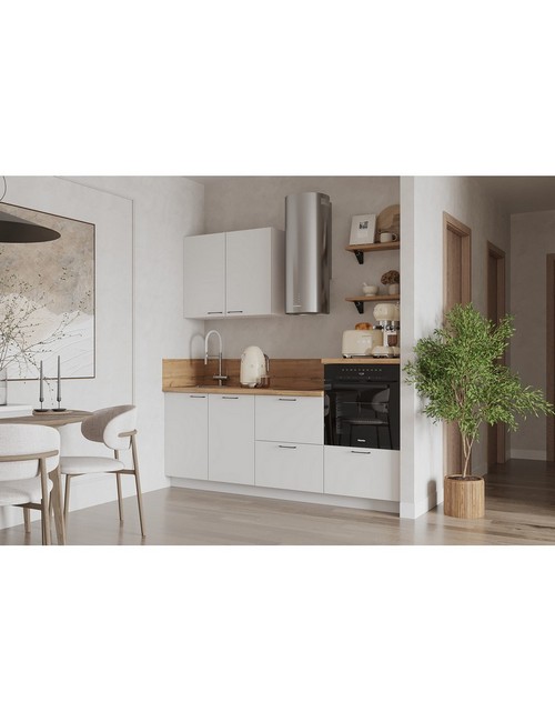 Технические характеристики: Кухонный гарнитур 2100 вариант 2 Лизет (белый). Роскошный кухонный гарнитур с безупречными линиями и гармоничными пропорциями. Благородная палитра оттенков, выразительная текстура дерева и сдержанная эстетика, создающая атмосферу уюта и порядка. Направляющие Firmax с повышенным запасом прочности - свыше 60 000 циклов. Усиленные механизмы, выдерживающие нагрузку более 30 кг. Бесшумная и плавная работа всех движущихся элементов. Встроенная система Push to Open для скрытых ящиков, усиленное дно внутренних модулей для повышенной надежности. Высокий модуль под духовой шкаф для современного зонирования и регулируемые опоры для идеальной устойчивости. Цельная столешница без видимых стыков для простоты ухода, сменные металлические ручки, не требующие пересверливания. В кухонном гарнитуре 2100 вариант 2 коллекции Лизет каждая деталь, от премиальной фурнитуры до бесшовных поверхностей, создает кухню, которая станет не только функциональным пространством, но и источником вдохновения для всей семьи.