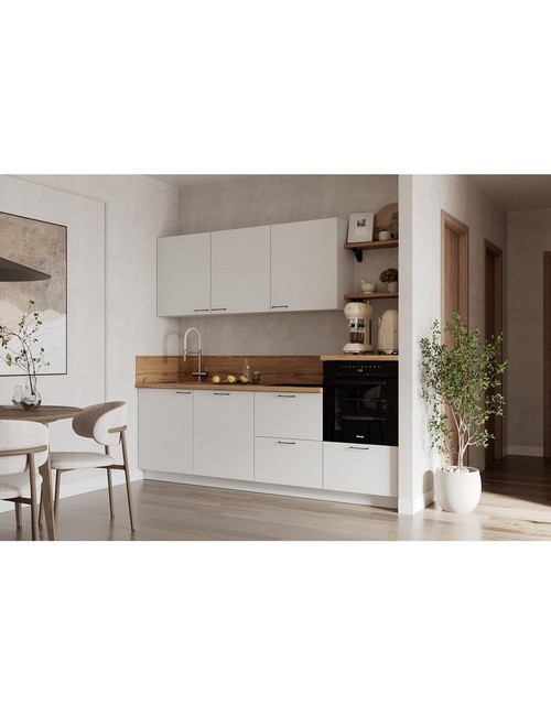 Технические характеристики: Кухонный гарнитур 2400 Лизет (белый). Роскошный кухонный гарнитур с безупречными линиями и гармоничными пропорциями. Благородная палитра оттенков, выразительная текстура дерева и сдержанная эстетика, создающая атмосферу уюта и порядка. Направляющие Firmax с повышенным запасом прочности - свыше 60 000 циклов. Усиленные механизмы, выдерживающие нагрузку более 30 кг. Бесшумная и плавная работа всех движущихся элементов. Встроенная система Push to Open для скрытых ящиков, усиленное дно внутренних модулей для повышенной надежности. Высокий модуль под духовой шкаф для современного зонирования и регулируемые опоры для идеальной устойчивости. Цельная столешница без видимых стыков для простоты ухода, сменные металлические ручки, не требующие пересверливания. В кухонном гарнитуре 2400 коллекции Лизет каждая деталь, от премиальной фурнитуры до бесшовных поверхностей, создает кухню, которая станет не только функциональным пространством, но и источником вдохновения для всей семьи.