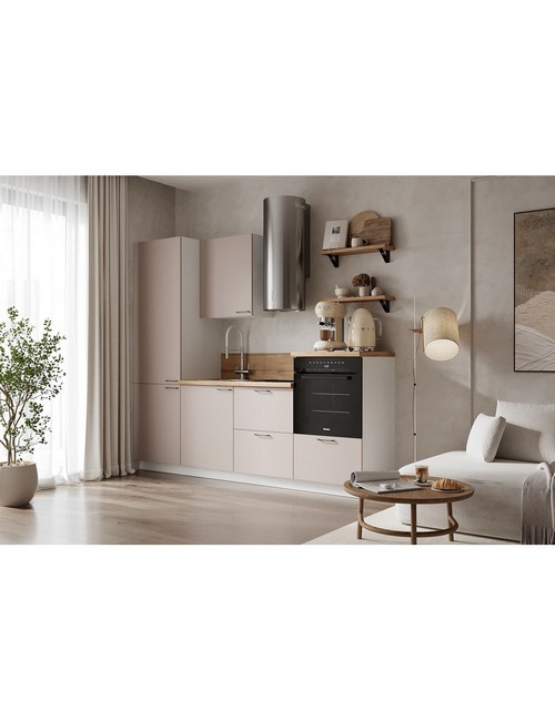 Технические характеристики: Кухонный гарнитур 2400 Магнолия ПВХ вариант 8. Роскошный кухонный гарнитур с безупречными линиями и гармоничными пропорциями. Благородная палитра оттенков, выразительная текстура дерева и сдержанная эстетика, создающая атмосферу уюта и порядка. Направляющие Firmax с повышенным запасом прочности - свыше 60 000 циклов. Усиленные механизмы, выдерживающие нагрузку более 30 кг. Бесшумная и плавная работа всех движущихся элементов. Встроенная система Push to Open для скрытых ящиков, усиленное дно внутренних модулей для повышенной надежности. Высокий модуль под духовой шкаф для современного зонирования и регулируемые опоры для идеальной устойчивости. Цельная столешница без видимых стыков для простоты ухода, сменные металлические ручки, не требующие пересверливания. В кухонном гарнитуре 2400 Магнолия ПВХ вариант 8 коллекции Лизет каждая деталь, от премиальной фурнитуры до бесшовных поверхностей, создает кухню, которая станет не только функциональным пространством, но и источником вдохновения для всей семьи.