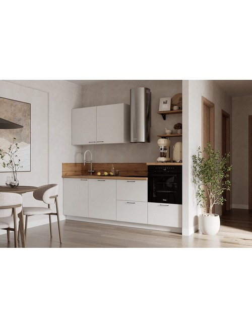 Технические характеристики: Кухонный гарнитур 2400 вариант 2 Лизет (белый). Роскошный кухонный гарнитур с безупречными линиями и гармоничными пропорциями. Благородная палитра оттенков, выразительная текстура дерева и сдержанная эстетика, создающая атмосферу уюта и порядка. Направляющие Firmax с повышенным запасом прочности - свыше 60 000 циклов. Усиленные механизмы, выдерживающие нагрузку более 30 кг. Бесшумная и плавная работа всех движущихся элементов. Встроенная система Push to Open для скрытых ящиков, усиленное дно внутренних модулей для повышенной надежности. Высокий модуль под духовой шкаф для современного зонирования и регулируемые опоры для идеальной устойчивости. Цельная столешница без видимых стыков для простоты ухода, сменные металлические ручки, не требующие пересверливания. В кухонном гарнитуре 2400 вариант 2 коллекции Лизет каждая деталь, от премиальной фурнитуры до бесшовных поверхностей, создает кухню, которая станет не только функциональным пространством, но и источником вдохновения для всей семьи.