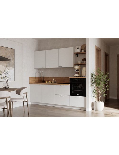 Технические характеристики: Кухонный гарнитур 2400 вариант 4 Лизет (белый). Роскошный кухонный гарнитур с безупречными линиями и гармоничными пропорциями. Благородная палитра оттенков, выразительная текстура дерева и сдержанная эстетика, создающая атмосферу уюта и порядка. Направляющие Firmax с повышенным запасом прочности - свыше 60 000 циклов. Усиленные механизмы, выдерживающие нагрузку более 30 кг. Бесшумная и плавная работа всех движущихся элементов. Встроенная система Push to Open для скрытых ящиков, усиленное дно внутренних модулей для повышенной надежности. Высокий модуль под духовой шкаф для современного зонирования и регулируемые опоры для идеальной устойчивости. Цельная столешница без видимых стыков для простоты ухода, сменные металлические ручки, не требующие пересверливания. В кухонном гарнитуре 2400 вариант 4 коллекции Лизет каждая деталь, от премиальной фурнитуры до бесшовных поверхностей, создает кухню, которая станет не только функциональным пространством, но и источником вдохновения для всей семьи.