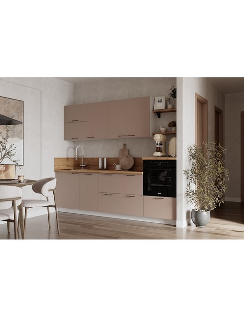 Технические характеристики: Кухонный гарнитур 2550 Лизет (крем). Роскошный кухонный гарнитур с безупречными линиями и гармоничными пропорциями. Благородная палитра оттенков, выразительная текстура дерева и сдержанная эстетика, создающая атмосферу уюта и порядка. Направляющие Firmax с повышенным запасом прочности - свыше 60 000 циклов. Усиленные механизмы, выдерживающие нагрузку более 30 кг. Бесшумная и плавная работа всех движущихся элементов. Встроенная система Push to Open для скрытых ящиков, усиленное дно внутренних модулей для повышенной надежности. Высокий модуль под духовой шкаф для современного зонирования и регулируемые опоры для идеальной устойчивости. Цельная столешница без видимых стыков для простоты ухода, сменные металлические ручки, не требующие пересверливания. В кухонном гарнитуре 2550 коллекции Лизет каждая деталь, от премиальной фурнитуры до бесшовных поверхностей, создает кухню, которая станет не только функциональным пространством, но и источником вдохновения для всей семьи.