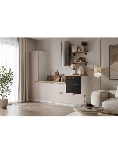 Технические характеристики: Кухонный гарнитур 2550 Магнолия ПВХ вариант 9. Роскошный кухонный гарнитур с безупречными линиями и гармоничными пропорциями. Благородная палитра оттенков, выразительная текстура дерева и сдержанная эстетика, создающая атмосферу уюта и порядка. Направляющие Firmax с повышенным запасом прочности - свыше 60 000 циклов. Усиленные механизмы, выдерживающие нагрузку более 30 кг. Бесшумная и плавная работа всех движущихся элементов. Встроенная система Push to Open для скрытых ящиков, усиленное дно внутренних модулей для повышенной надежности. Высокий модуль под духовой шкаф для современного зонирования и регулируемые опоры для идеальной устойчивости. Цельная столешница без видимых стыков для простоты ухода, сменные металлические ручки, не требующие пересверливания. В кухонном гарнитуре 2550 Магнолия ПВХ вариант 9 коллекции Лизет каждая деталь, от премиальной фурнитуры до бесшовных поверхностей, создает кухню, которая станет не только функциональным пространством, но и источником вдохновения для всей семьи.