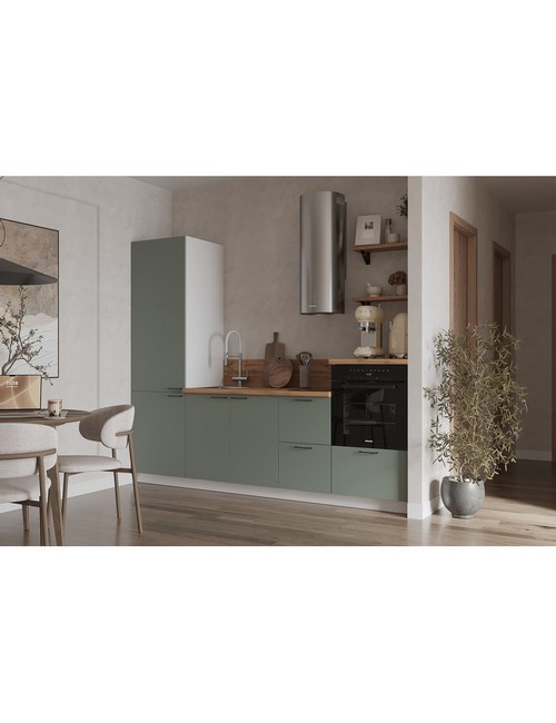 Технические характеристики: Кухонный гарнитур 2550 Олива эмаль вариант 12. Роскошный кухонный гарнитур с безупречными линиями и гармоничными пропорциями. Благородная палитра оттенков, выразительная текстура дерева и сдержанная эстетика, создающая атмосферу уюта и порядка. Направляющие Firmax с повышенным запасом прочности - свыше 60 000 циклов. Усиленные механизмы, выдерживающие нагрузку более 30 кг. Бесшумная и плавная работа всех движущихся элементов. Встроенная система Push to Open для скрытых ящиков, усиленное дно внутренних модулей для повышенной надежности. Высокий модуль под духовой шкаф для современного зонирования и регулируемые опоры для идеальной устойчивости. Цельная столешница без видимых стыков для простоты ухода, сменные металлические ручки, не требующие пересверливания. В кухонном гарнитуре 2550 Олива эмаль вариант 12 коллекции Лизет каждая деталь, от премиальной фурнитуры до бесшовных поверхностей, создает кухню, которая станет не только функциональным пространством, но и источником вдохновения для всей семьи.