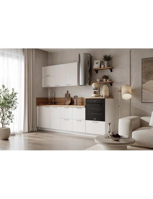 Технические характеристики: Кухонный гарнитур 2550 вариант 2 Лизет (белый софт матовый). Роскошный кухонный гарнитур с безупречными линиями и гармоничными пропорциями. Благородная палитра оттенков, выразительная текстура дерева и сдержанная эстетика, создающая атмосферу уюта и порядка. Направляющие Firmax с повышенным запасом прочности - свыше 60 000 циклов. Усиленные механизмы, выдерживающие нагрузку более 30 кг. Бесшумная и плавная работа всех движущихся элементов. Встроенная система Push to Open для скрытых ящиков, усиленное дно внутренних модулей для повышенной надежности. Высокий модуль под духовой шкаф для современного зонирования и регулируемые опоры для идеальной устойчивости. Цельная столешница без видимых стыков для простоты ухода, сменные металлические ручки, не требующие пересверливания. В кухонном гарнитуре 2550 вариант 2 коллекции Лизет каждая деталь, от премиальной фурнитуры до бесшовных поверхностей, создает кухню, которая станет не только функциональным пространством, но и источником вдохновения для всей семьи.