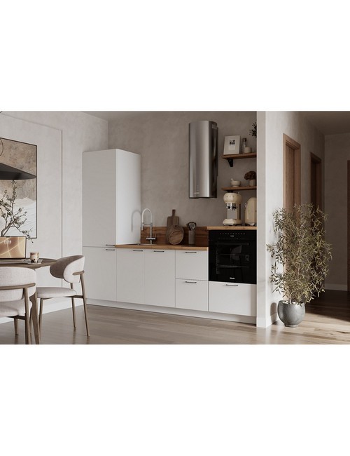 Технические характеристики: Кухонный гарнитур 2550 вариант 9 Лизет (белый). Роскошный кухонный гарнитур с безупречными линиями и гармоничными пропорциями. Благородная палитра оттенков, выразительная текстура дерева и сдержанная эстетика, создающая атмосферу уюта и порядка. Направляющие Firmax с повышенным запасом прочности - свыше 60 000 циклов. Усиленные механизмы, выдерживающие нагрузку более 30 кг. Бесшумная и плавная работа всех движущихся элементов. Встроенная система Push to Open для скрытых ящиков, усиленное дно внутренних модулей для повышенной надежности. Высокий модуль под духовой шкаф для современного зонирования и регулируемые опоры для идеальной устойчивости. Цельная столешница без видимых стыков для простоты ухода, сменные металлические ручки, не требующие пересверливания. В кухонном гарнитуре 2550 вариант 9 коллекции Лизет каждая деталь, от премиальной фурнитуры до бесшовных поверхностей, создает кухню, которая станет не только функциональным пространством, но и источником вдохновения для всей семьи.