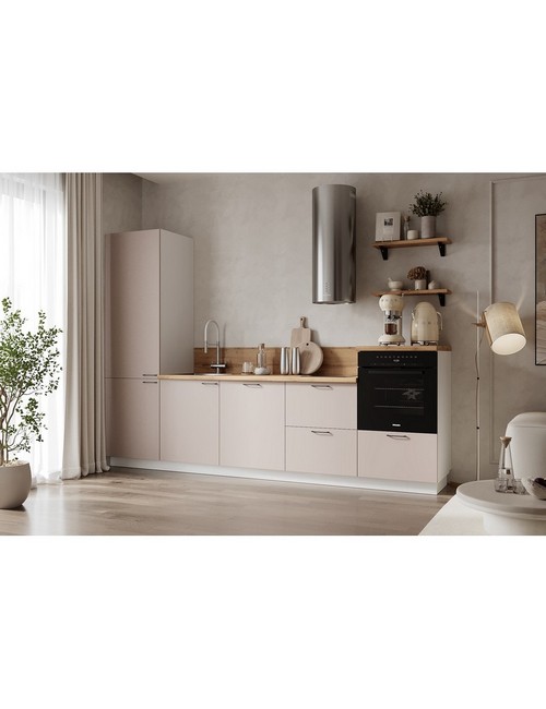 Технические характеристики: Кухонный гарнитур 3000 Магнолия ПВХ вариант 9. Роскошный кухонный гарнитур с безупречными линиями и гармоничными пропорциями. Благородная палитра оттенков, выразительная текстура дерева и сдержанная эстетика, создающая атмосферу уюта и порядка. Направляющие Firmax с повышенным запасом прочности - свыше 60 000 циклов. Усиленные механизмы, выдерживающие нагрузку более 30 кг. Бесшумная и плавная работа всех движущихся элементов. Встроенная система Push to Open для скрытых ящиков, усиленное дно внутренних модулей для повышенной надежности. Высокий модуль под духовой шкаф для современного зонирования и регулируемые опоры для идеальной устойчивости. Цельная столешница без видимых стыков для простоты ухода, сменные металлические ручки, не требующие пересверливания. В кухонном гарнитуре 3000 Магнолия ПВХ вариант 9 коллекции Лизет каждая деталь, от премиальной фурнитуры до бесшовных поверхностей, создает кухню, которая станет не только функциональным пространством, но и источником вдохновения для всей семьи.