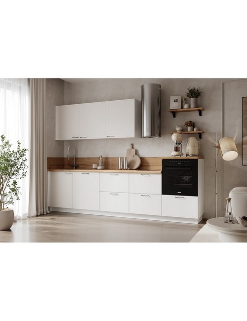 Технические характеристики: Кухонный гарнитур 3000 вариант 2 Лизет (белый софт матовый). Роскошный кухонный гарнитур с безупречными линиями и гармоничными пропорциями. Благородная палитра оттенков, выразительная текстура дерева и сдержанная эстетика, создающая атмосферу уюта и порядка. Направляющие Firmax с повышенным запасом прочности - свыше 60 000 циклов. Усиленные механизмы, выдерживающие нагрузку более 30 кг. Бесшумная и плавная работа всех движущихся элементов. Встроенная система Push to Open для скрытых ящиков, усиленное дно внутренних модулей для повышенной надежности. Высокий модуль под духовой шкаф для современного зонирования и регулируемые опоры для идеальной устойчивости. Цельная столешница без видимых стыков для простоты ухода, сменные металлические ручки, не требующие пересверливания. В кухонном гарнитуре 3000 вариант 2 коллекции Лизет каждая деталь, от премиальной фурнитуры до бесшовных поверхностей, создает кухню, которая станет не только функциональным пространством, но и источником вдохновения для всей семьи.