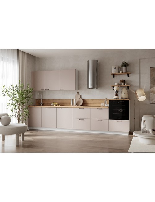 Технические характеристики: Кухонный гарнитур 3600 Магнолия ПВХ вариант 2. Роскошный кухонный гарнитур с безупречными линиями и гармоничными пропорциями. Благородная палитра оттенков, выразительная текстура дерева и сдержанная эстетика, создающая атмосферу уюта и порядка. Направляющие Firmax с повышенным запасом прочности - свыше 60 000 циклов. Усиленные механизмы, выдерживающие нагрузку более 30 кг. Бесшумная и плавная работа всех движущихся элементов. Встроенная система Push to Open для скрытых ящиков, усиленное дно внутренних модулей для повышенной надежности. Высокий модуль под духовой шкаф для современного зонирования и регулируемые опоры для идеальной устойчивости. Цельная столешница без видимых стыков для простоты ухода, сменные металлические ручки, не требующие пересверливания. В кухонном гарнитуре 3600 Магнолия ПВХ вариант 2 коллекции Лизет каждая деталь, от премиальной фурнитуры до бесшовных поверхностей, создает кухню, которая станет не только функциональным пространством, но и источником вдохновения для всей семьи.