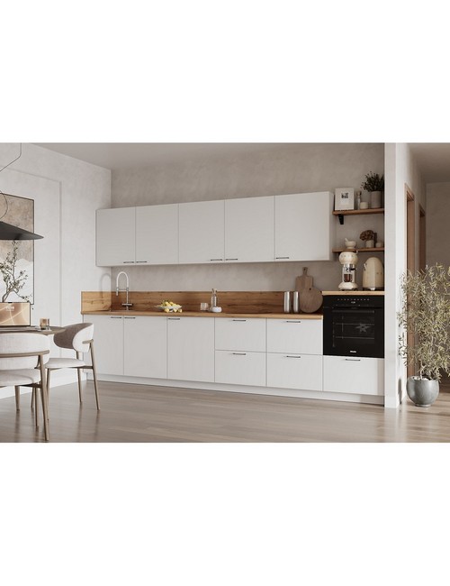 Технические характеристики: Кухонный гарнитур 3600 вариант 4 Лизет (белый). Роскошный кухонный гарнитур с безупречными линиями и гармоничными пропорциями. Благородная палитра оттенков, выразительная текстура дерева и сдержанная эстетика, создающая атмосферу уюта и порядка. Направляющие Firmax с повышенным запасом прочности - свыше 60 000 циклов. Усиленные механизмы, выдерживающие нагрузку более 30 кг. Бесшумная и плавная работа всех движущихся элементов. Встроенная система Push to Open для скрытых ящиков, усиленное дно внутренних модулей для повышенной надежности. Высокий модуль под духовой шкаф для современного зонирования и регулируемые опоры для идеальной устойчивости. Цельная столешница без видимых стыков для простоты ухода, сменные металлические ручки, не требующие пересверливания. В кухонном гарнитуре 3600 вариант 4 коллекции Лизет каждая деталь, от премиальной фурнитуры до бесшовных поверхностей, создает кухню, которая станет не только функциональным пространством, но и источником вдохновения для всей семьи.