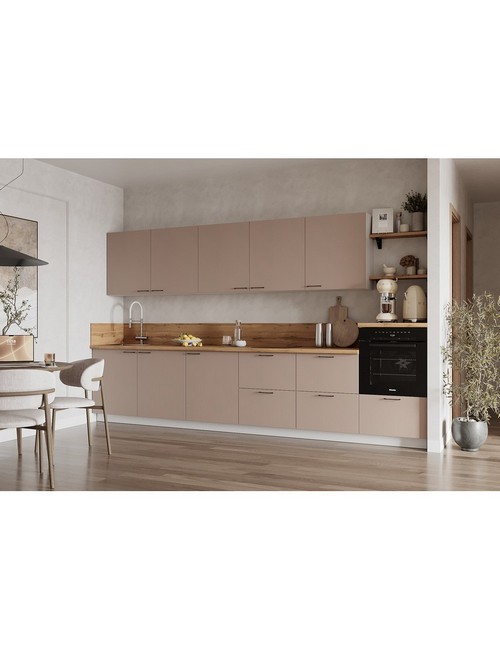 Технические характеристики: Кухонный гарнитур 3600 вариант 4 Лизет (крем). Роскошный кухонный гарнитур с безупречными линиями и гармоничными пропорциями. Благородная палитра оттенков, выразительная текстура дерева и сдержанная эстетика, создающая атмосферу уюта и порядка. Направляющие Firmax с повышенным запасом прочности - свыше 60 000 циклов. Усиленные механизмы, выдерживающие нагрузку более 30 кг. Бесшумная и плавная работа всех движущихся элементов. Встроенная система Push to Open для скрытых ящиков, усиленное дно внутренних модулей для повышенной надежности. Высокий модуль под духовой шкаф для современного зонирования и регулируемые опоры для идеальной устойчивости. Цельная столешница без видимых стыков для простоты ухода, сменные металлические ручки, не требующие пересверливания. В кухонном гарнитуре 3600 вариант 4 коллекции Лизет каждая деталь, от премиальной фурнитуры до бесшовных поверхностей, создает кухню, которая станет не только функциональным пространством, но и источником вдохновения для всей семьи.