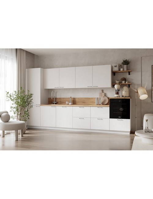 Технические характеристики: Кухонный гарнитур 3600 вариант 7 Лизет (белый софт матовый). Роскошный кухонный гарнитур с безупречными линиями и гармоничными пропорциями. Благородная палитра оттенков, выразительная текстура дерева и сдержанная эстетика, создающая атмосферу уюта и порядка. Направляющие Firmax с повышенным запасом прочности - свыше 60 000 циклов. Усиленные механизмы, выдерживающие нагрузку более 30 кг. Бесшумная и плавная работа всех движущихся элементов. Встроенная система Push to Open для скрытых ящиков, усиленное дно внутренних модулей для повышенной надежности. Высокий модуль под духовой шкаф для современного зонирования и регулируемые опоры для идеальной устойчивости. Цельная столешница без видимых стыков для простоты ухода, сменные металлические ручки, не требующие пересверливания. В кухонном гарнитуре 3600 вариант 7 коллекции Лизет каждая деталь, от премиальной фурнитуры до бесшовных поверхностей, создает кухню, которая станет не только функциональным пространством, но и источником вдохновения для всей семьи.