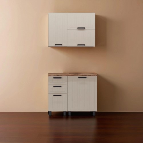 Кухонный гарнитур Аленушка 1 м с 2 ящ Орхидея Крем, скоба черный, сонома