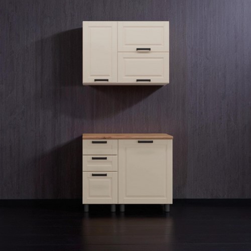 Кухонный гарнитур Аленушка 1 м с 3 ящиками Астра Крем, скоба черный, сонома