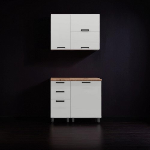 Кухонный гарнитур Аленушка 1 м с 3 ящиками Лаванда Молочный, скоба черный, сонома