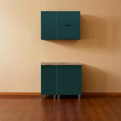 Кухонный гарнитур Аленушка 1 м с 3 ящиками Лотос Изумруд, скоба антрацит, сонома