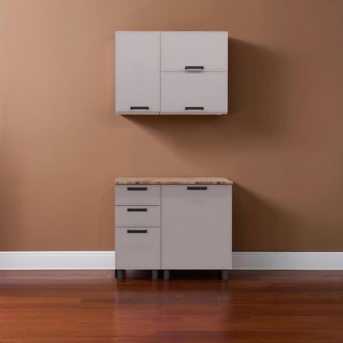 Кухонный гарнитур Аленушка 1 м с 3 ящиками Магнолия Керамика, скоба черный, сонома