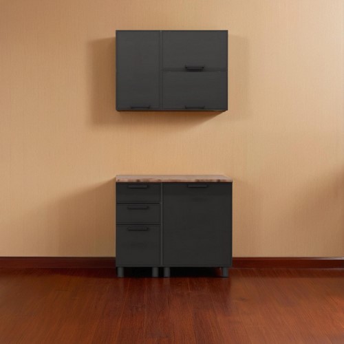 Кухонный гарнитур Аленушка 1 м с 3 ящиками Магнолия Сталь, скоба черный, сонома