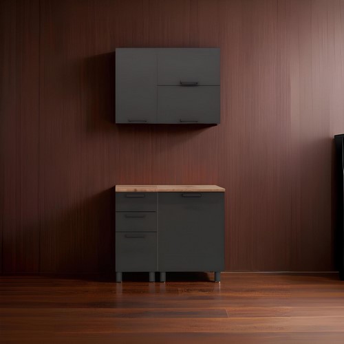 Кухонный гарнитур Аленушка 1 м с 3 ящиками Сталь, скоба черный, сонома