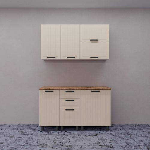 Кухонный гарнитур Аленушка 1,4 м с ящиком Орхидея Крем, скоба черный, сонома