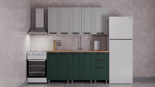 Кухонный гарнитур Аленушка 1,6 м Лилия Керамика/Изумруд, черный (без столешницы)