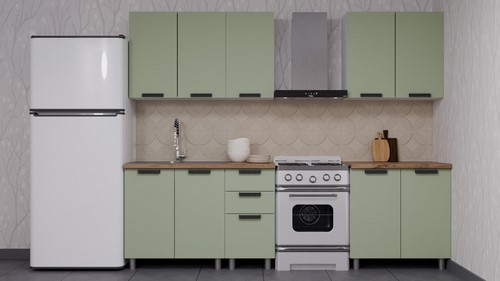 Кухонный гарнитур Аленушка 2 м Лаванда Фисташка/Фисташка, скоба черный, сонома