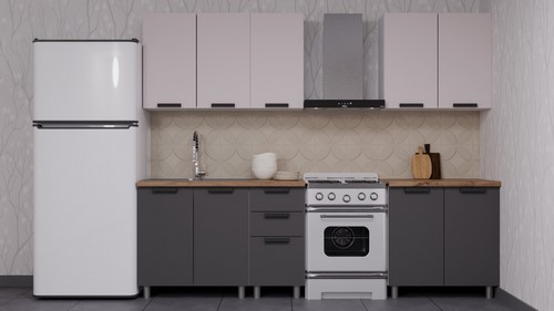 Кухонный гарнитур Аленушка 2 м Лаванда Кашемир/Сталь, скоба черный, сонома