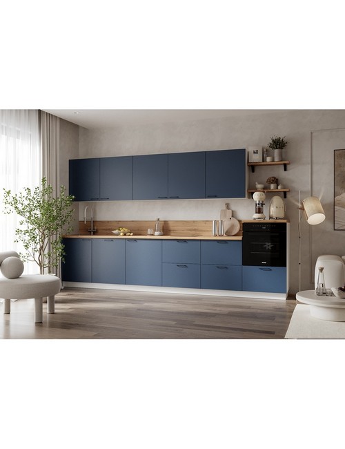 Технические характеристики: Кухонный гарнитур Ежевика 3600. Роскошный кухонный гарнитур с безупречными линиями и гармоничными пропорциями. Благородная палитра оттенков, выразительная текстура натурального дерева и сдержанная эстетика, создающая атмосферу уюта и порядка. Направляющие Firmax с повышенным запасом прочности - свыше 60 000 циклов. Усиленные механизмы, выдерживающие нагрузку более 30 кг. Бесшумная и плавная работа всех движущихся элементов. Встроенная система Push to Open для скрытых ящиков, усиленное дно внутренних модулей для повышенной надежности. Высокий модуль под духовой шкаф для современного зонирования и регулируемые опоры для идеальной устойчивости. Цельная столешница без видимых стыков для простоты ухода, сменные металлические ручки, не требующие пересверливания. В кухонном гарнитуре Ежевика 3600 каждая деталь, от премиальной фурнитуры до бесшовных поверхностей, создает кухню, которая станет не только функциональным пространством, но и источником вдохновения для всей семьи.