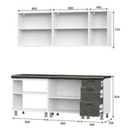 Особенности: Кухонный гарнитур Модус 2 метра (белый/камень темный/черный) со столешницей 26 мм станет оптимальным решением, если вы хотите выбрать компактную и функциональную модель. Все фасады являются универсальными. Кухня укомплектована опорами, которые вы сможете отрегулировать по высоте, а также ручками. Обратите внимание, что дополнительное оборудование (мойка, смеситель, бытовая техника) приобретаются отдельно. Направляющие ящиков: Шариковые Максимальная нагрузка на ящик: 5 кг Максимальная нагрузка на полку: 10 кг Столешница в комплекте (2000х600х26 мм).