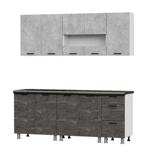 Кухонный гарнитур Модус 2 метра (белый/камень темный/черный) со столешницей 26 мм