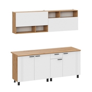 Цвет: корпуса - дуб золотистый, фасада - белый матовый, столешницы - дуб вотан.