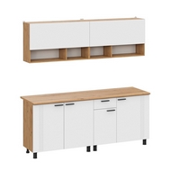 Комплектация: Стол под мойку (82 х 100 х 44,2 см). Стол 2 двери 1 ящик (82 х 100 х 44,2 см). Шкаф 1 дверь (60 х 100 х 29,6 см) - 2 шт. Столешница в декоре дуб вотан (2,6 х 100 х 60 см) - 2 шт.