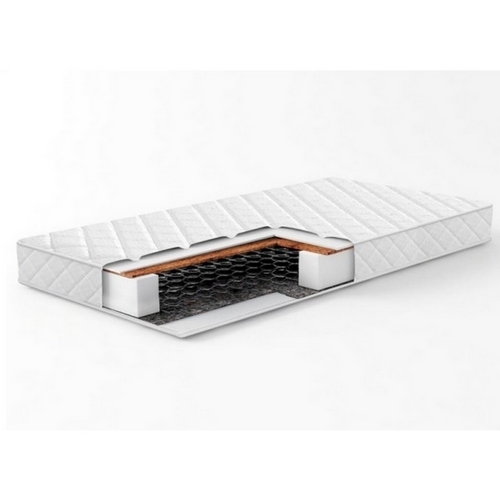 Технические характеристики: Анатомический матрас. Жесткость средняя/ниже средней. Высота 19 см. Max нагрузка - 110 кг. Зависимый пружинный блок. Состав матраса: 1. Система комфортности - синтетический жаккард, стеганый на синтепоне и спанбонде 2. Анатомическая пена Orto Flex 10 мм 3. Кокосовое полотно 4. Зависимый пружинный блок Bonnell 5. Термовойлок 6. Анатомическая пена Orto Flex 10 мм 7. Усиление по периметру (короб) Традиционный матрас, выполненный на основе зависимого блока Bonnell. В качестве мягкого элемента используются анатомическая пена и кокосовое волокно - безопасные и влагоустойчивые материалы, не подверженные усадке.