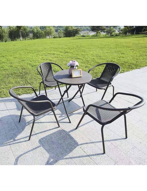 В комплекте: четыре кресла BELT-WR-SX026 и стол BMK-B-Stol-skladnoj-plastikovyj-d60-sm-s-imitaciej-pleteniya.