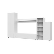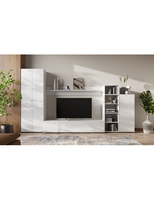 Технические характеристики: Набор для гостиной Amazon (белый матовый). Современный мебельный гарнитур, создающий элегантную и функциональную зону хранения в гостиной. Модель отличается лаконичным дизайном, качественной фурнитурой и продуманной организацией пространства. Система открывания Push-to-Open для плавного бесшумного доступа. Механизм газлифт для легкости использования вертикальных фасадов, классические петли без системы доводки. Стабилизирующие пластиковые опоры высотой 2 см. В комплекте шкаф для одежды и стенка в гостиную. Верхняя длинная полка для декоративных предметов не только расширяет пространство визуально, но и придает интерьеру завершенность и легкость. Открытый стеллаж позволяет разместить часто используемые вещи, любимые книги или элементы декора. Закрытые шкафы сохраняют атмосферу безупречного порядка, телевизионная тумба с тремя просторными отсеками для хранения различных предметов. Набор для гостиной Amazon гармонично сочетает современные технологии открывания, эргономичную организацию и нейтральную эстетику.