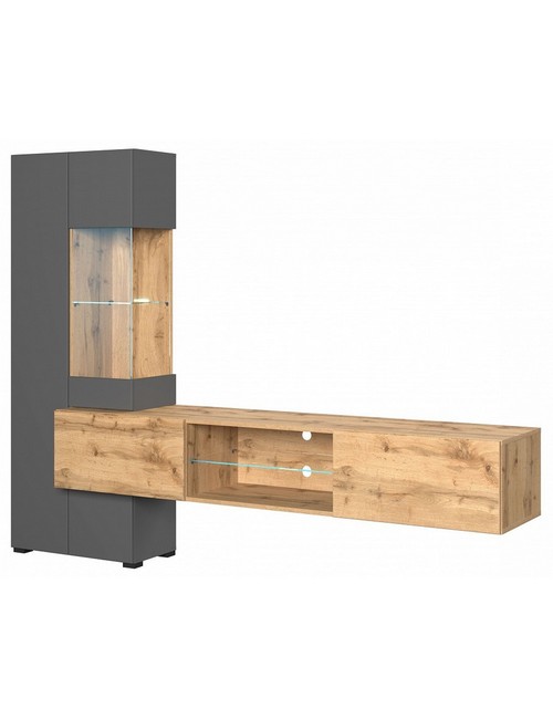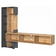 Ширина, см: 210. Высота, см: 160. Выступ, см: 4. Компоненты, входящие в комплект: 5 дверцев, 7 полок. Стиль: модерн. Страна-производитель: Россия. Объем (м3): 0.1. Основной цвет: разноцветная. Материал фасада: МДФ, стекло. Материал корпуса: ЛДСП Е1. Тип поверхности корпуса: матовый. Место размещения: Пол. Помещение: Гостиная. Гарантия (месяц): 24. Основное помещение: Гостиная. Цвет корпуса: графит серый, дуб вотан. Цвет фасада: графит серый, дуб вотан, неокрашенный.