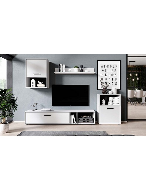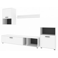 Ширина, см: 201,2. Высота, см: 190. Выступ, см: 3. Компоненты, входящие в комплект: полка навесная - 1000x166x150 (мм), тумба - 500x300x698 (мм), тумба навесная - 500x300x678 (мм), тумба под ТВ - 1600x360x308 (мм). Стиль: модерн. Страна-производитель: Россия. Объем (м3): 0.09. Основной цвет: разноцветная. Материал фасада: ЛДСП Е1. Материал корпуса: ЛДСП Е1. Тип поверхности корпуса: матовый. Место размещения: Пол. Помещение: Гостиная. Гарантия (месяц): 24. Основное помещение: Гостиная. Цвет корпуса: белый. Цвет фасада: белый.