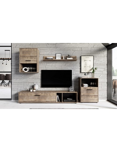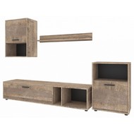 Ширина, см: 201,2. Высота, см: 190. Выступ, см: 3. Компоненты, входящие в комплект: полка навесная - 1000x166x150 (мм), тумба - 500x300x698 (мм), тумба навесная - 500x300x678 (мм), тумба под ТВ - 1600x360x308 (мм). Стиль: модерн. Страна-производитель: Россия. Объем (м3): 0.09. Основной цвет: разноцветная. Материал фасада: ЛДСП Е1. Материал корпуса: ЛДСП Е1. Тип поверхности корпуса: матовый. Место размещения: Пол. Помещение: Гостиная. Гарантия (месяц): 24. Основное помещение: Гостиная. Цвет корпуса: дуб гранж песочный. Цвет фасада: дуб гранж песочный.