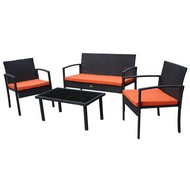 Технические характеристики: Комплект мебели из искусственного ротанга состоит из двухместного дивана, двух кресел и кофейного столика. Имитация плетения натурального ротанга. Прочный металлический каркас. Комплект устойчив к различным погодным условиям и может располагаться дома или на улице. Подходит как для частного, так и для коммерческого использования (кафе, рестораны, лаундж-зоны и т.д.). Поставляется с мягкими подушками на сиденья, толщина которых составляет 5 см. Чехлы подушек из водоотталкивающей ткани без рисунка.
