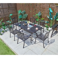Обеденная группа из литого алюминия стол Вулкан-2 (Volcano-2) 90x175 бронза и 6 кресел Флоренс (Florence)