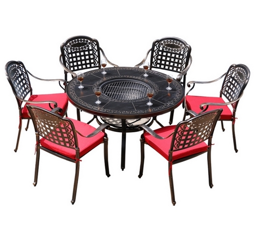 Обеденный комплект из литого алюминия стол Барбекю-4 (122 см) и 6 кресел Вулкан