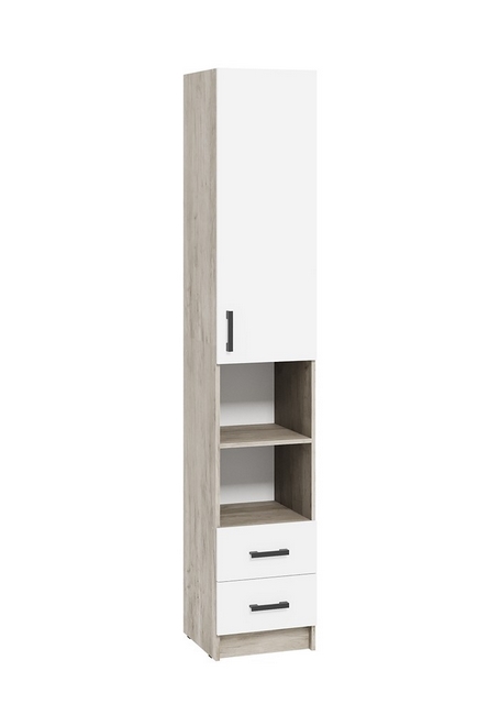 Особенности: Пенал Вега - компактный и функциональный элемент мебели, идеально подходит для хранения различных вещей. Узкий и вертикальный дизайн пенала позволяет эффективно использовать пространство даже в малогабаритных помещениях. Дверцы пенала распашные. Ручки пластиковые. Выдвижные ящики на шариковых направляющих.