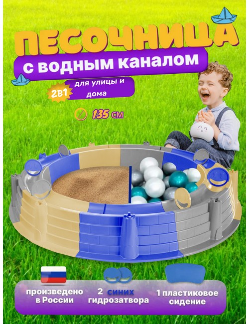 Технические характеристики: Песочница детская сборная с одним сидением (серый, синий, бежевый). Универсальный и многофункциональный игровой комплекс для детей, который легко трансформируется из песочницы в бассейн и даже в сухую игровую зону с шариками. Яркая круглая конструкция с одним сидением и водным каналом станет любимым местом для игр на даче, во дворе или в помещении. Наполняется водой для летнего освежения благодаря гидрозатворам и водному каналу. Специальный желоб создает эффект водной речки, добавляя увлекательный элемент в игру. Каждое сиденье выдерживает нагрузку до 100 кг. Легко собирается и разбирается, компактно хранится, легкий вес и удобная транспортировка. Песочница детская сборная с одним сидением подарит детям часы увлекательных игр, развивая творчество, воображение и физическую активность.