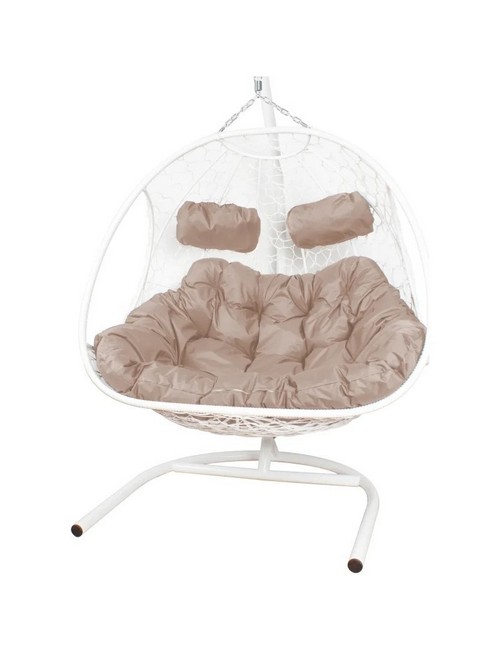 Подвесное кресло ДОБРЫНЯ с ротангом (белый с бежевой подушкой)